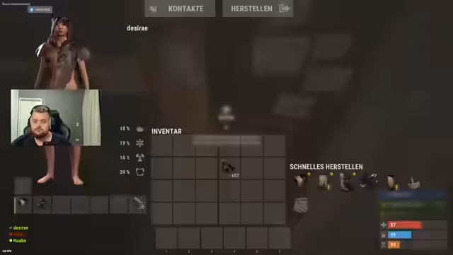 04:43:12Der Stream startet mit einem Comeback in das Spiel, bei dem der Streamer ohne Erfahrung und ohne Ausrüstung neu beginnt, während seine Mitspieler bereits über 8 AP sammeln konnten. Gemeinsam planen sie eine Ölexpedition, craften Waffen und planen, eine Zweierwerkbank zu bauen. Bei der Erkundung stößt man auf ein gegnerisches U-Boot, was zu einem hitzigen Feuergefecht führt. In dem Kampf verliert der Streamer jedoch all seine Ausrüstung und Loot, was ihn frustriert und ihn zwingt, von vorne zu beginnen.