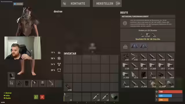 05:07:38Nachdem der Streamer neu ausgestattet ist, kehrt er mit seinem Team in das Spiel zurück und erkundet eine verlassene Basis. Sie finden dort viel Holz, Stein, Metall und Waffen, was ihnen ermöglicht, sofort wieder eine neue, stabile Basis zu errichten. Sie planen, die Basis auszubauen und einen Shop einzurichten. Der Streamer ist erleichtert und motiviert, wieder im Spiel zu sein, obwohl sie zuvor fast alles verloren hatten.