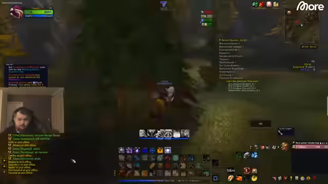 03:10:33Der Streamer nähert sich dem Level 60 und hat gemischte Gefühle. Einerseits ist es ein großes Ziel, andererseits sieht er den Zustand als unangenehm an, da er dann mit der endgültigen Ausrüstung und der Bewältigung von Inhalten konfrontiert ist. Er überlegt, ob er sofort ins PvP gehen, Berufe leveln oder sogar einen Mod für das Spiel entwickeln sollte, um das Endgame interessanter zu gestalten.