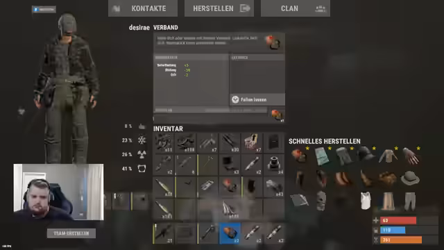 05:14:18Der Streamer und sein Clan werden während ihrer Offline-Zeit von einem anderen Clan angegriffen und verwundet. Er diskutiert mit dem Chat darüber, wie dies möglich war, ob durch Türen, Schlösser oder eine Spion. Er vermutet, dass die Angreifer gewusst haben müssen, dass jemand von ihnen online ist, da der Server als tot gilt. Der Vorfall bestätigt seine Annahme, dass sie früher oder später angegriffen werden würden, und er zeigt sich gelassen und gestresst zugleich.