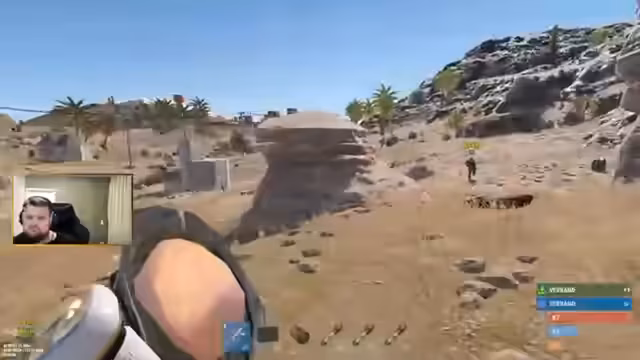 02:56:49Es kommt zu einem Feuergefecht mit gegnerischen Spielern, die versuchen, den Streamer auf einem Berg zu stellen. Die Gegner laufen und manövrieren, während der Streamer versucht, sie zu treffen. Der Streamer schießt einen Gegner tot, kann die anderen aber nicht halten. Anschließend folgt die Suche nach der gegnerischen Basis und dem darauf folgenden Plündern der Ausrüstung.