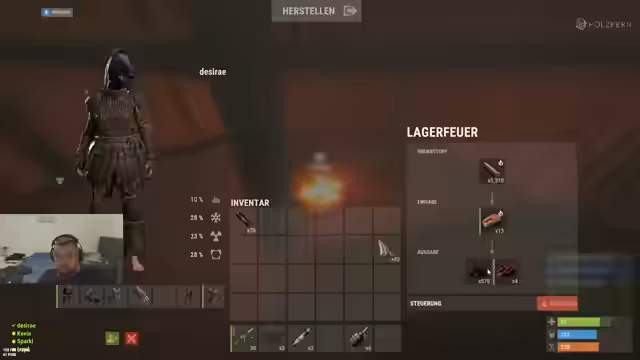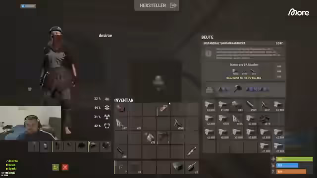 01:40:21Nach dem gescheiterten Vorstoß ins Silo analysiert die Gruppe ihre Situation. Sie haben wichtige Ressourcen gesammelt, wie elf Strings und Munition, und beginnen damit, neue Ausrüstung wie Kameratresor zu craften. Man plant, die科学家 (Scientists) zu eliminieren, um ihre Ausrüstung zu looten, da deren Ausgang das Spiel für andere Spieler schwieriger macht. Die Gruppe ist entschlossen, ihre strategische Position zu festigen und ihre Vorräte zu erhöhen, um zukünftige Angriffe besser abwehren zu können.