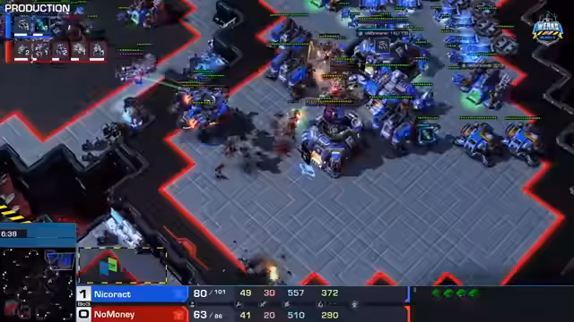 01:45:21In der Anfangsphase des Streams wird das Spiel zwischen den Spielern No Money und Nikorekt intensiv analysiert. Nikorekt zeigt eine überlegene Strategie mit Raven und Liberator Einheiten, die die Army von No Money effektiv kontrollieren. No Money gerät trotz seiner offensiven Spielweise in Rückstand, besonders nachdem er wichtige Einheiten und Arbeiter verliert. Kommentatoren betonen die taktischen Fehler von No Money während des Spiels, insbesondere bei der Verteidigung gegen die Luftüberlegenheit von Nikorekt.
