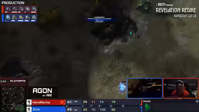 02:10:52Im ersten Spiel der Reihe zwischen Hero Marine und Zaun wurde die Wahl eines sehr defensiven und ungewöhnlichen Protoss-Builds diskutiert. Zaun entschied sich für eine späte Expansion und konzentrierte sich auf eine starke Verteidigung mit Stalkern. Dies zwang den Terran-Spieler zu einem langsameren, makro-orientierten Spiel. Kommentatoren bewunderten die Disziplin von Zaun, obwohl seine Makro-Entscheidungen kritisiert wurden, da seine Stärke in der Armeekontrolle und nicht im wirtschaftlichen Aufbau liegt. Das Spiel entwickelte sich zu einem langen Zermürbungskampf um die Ressourcen.