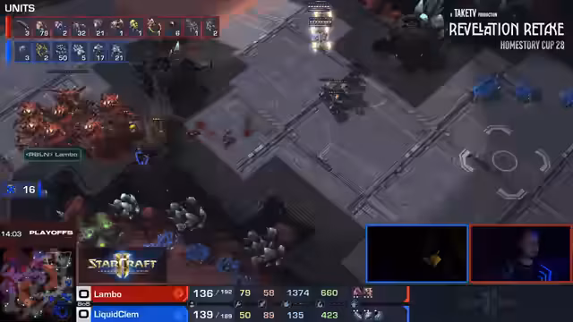 03:08:20Im Spiel zwischen Clem und Lambo setzt Lambo auf eine Ultralisk-Strategie, während Clem mit Liberator und Mines kontert. Die Analyse zeigt Lambos wirtschaftliche Stärke durch drei Basen und die Wirksamkeit seiner hochgerüsteten Ultralisks gegen Clem Marines. Clem kämpft jedoch mit der Defensive gegen Lambo Roach/Ravager Push und verliert wichtige SCVs. Trotzdem gelingt es Clem, mit solidem Bunkerbau und späteren Infestors einen entscheidenden Vorteil zu erarbeiten und das Spiel für sich zu entscheiden.