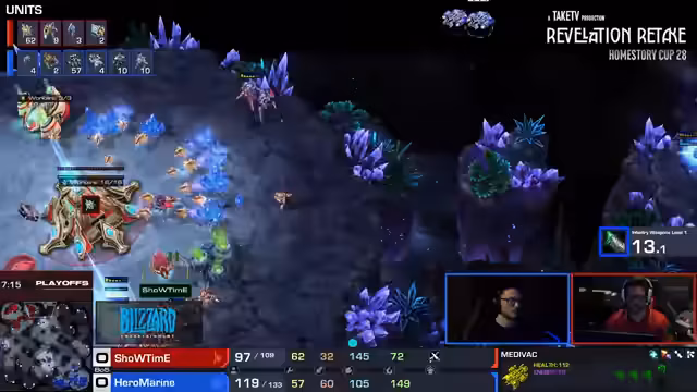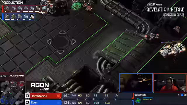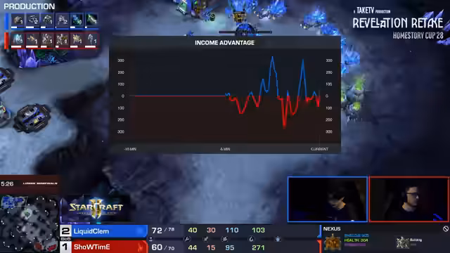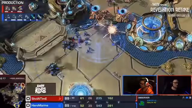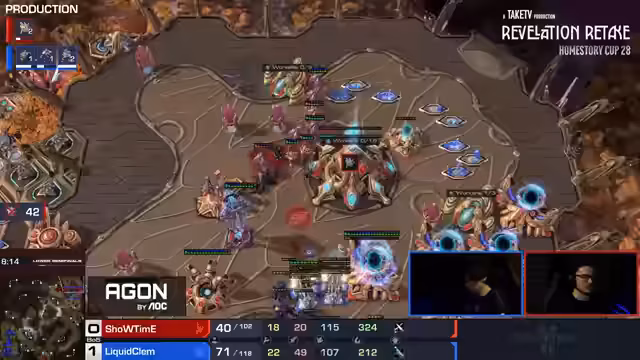 08:09:53Ein entscheidender Wendepunkt war der Verlust eines von Showtimes Observern, was ihn blinde machte und die Kontrolle über Clem's Aktionen verlor. Ohne Observers war es für Showtime extrem schwierig, Clem's Medivac-Drops und Angriffe zu antizipieren. Clem nutzte dies aus und führte einen massiven Angriff durch, der Showtime in eine sehr schlechte Position brachte. Der Verlust des Observers wurde als fatal für Showtime angesehen.