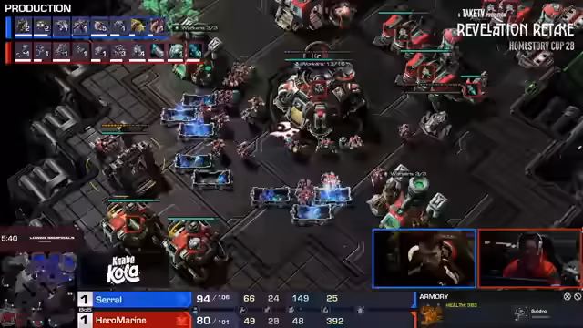 06:47:45Serral baut eine massiv starke Bio-Army auf, die aus Marines, Maraudern und vielen Medivacs besteht, während Hiromarine sich auf eine Mech-Komposition mit Tanks, Cyclons und Liberatoren verlässt. Analysten beobachten, dass Serrars Armeeversorgung bei 140 liegt, was eine signifikante numerische Überlegenheit darstellt. Hiromarines Armee wird jedoch als sehr effizient und robust bewertet, insbesondere durch seine hohe Anzahl an Minen und Defensive-Einheiten.