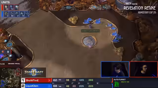 11:11:12Die Grand Finals von HomeStoryCup 28 beginnen mit einem Duell zwischen Clem und Showtime. Es ist das erste Finale für beide Spieler. Showtime, der bereits in den Finals der Ausgaben 25 und 27 stand, hat den Vorteil aus dem Upper Bracket, während Clem aus dem Lower Bracket kommt und zuerst einen Best-of-Five gewinnen muss. Die Kommentatoren analysieren die Match-up, wobei Clem im PvT als stark gilt, während Showtime als Underdog gilt, der aber bereits beeindruckende Turnierleistungen vorweisen kann.