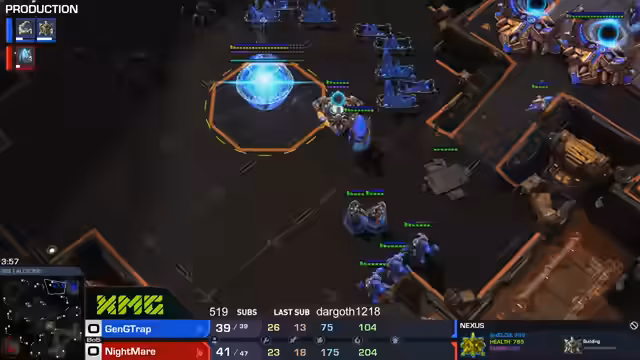 03:50:57Trap wird trotz unterlegener Ressourcen (6 Worker gegen 23) als 'ein Viech' und beeindruckend in seiner Spielmechanik und seinem Wissen gelobt. Er überleht den Druck von Nightmare mit einem Immortal und 'Battery Overcharge'. Das Spiel ist hart umkämpft, und der Kommentator fragt nach der Win Condition im 'Gauntlet'.