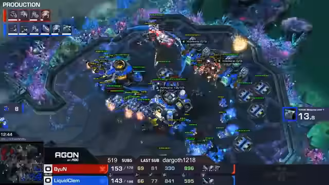 01:26:10Das dritte Spiel startet auf Amphion, wobei Clem bereits mit 2-0 führt. Es wird überlegt, welcher Cheese im TVT aktuell gut ist. Es wird erwähnt, dass Clem in der Gruppenphase geschwächelt hat, sich aber danach gesteigert hat. Byun startet einen vielversprechenden Push, der von Clem verteidigt wird. Byun hat sein drittes Command Center schneller, aber Clem gleicht aus. Byun ist schneller mit seiner vierten Base. Clem macht Druck, ist aber in der Eco hinten. Byun startet einen Drop und gleichzeitig einen Push, aber Clem verteidigt beides. Clem zieht sich zurück und baut weitere Starports für Ravens. Byun startet einen Drop, der aber abgewehrt wird. Clem drängt Byun zurück auf vier Basen und hat das Plus-2-Vehicle-Weapon-Upgrade. Byun versucht, seine Einheiten zu retten und das Command Center zu erholen, was ihm mit Stimpak und 3-3-Marines gelingt. Clem hat Ravens und Byun kein Plus-2 auf seine Vehicle. Clem gewinnt die Kämpfe durch den Einsatz von Ravens und One-Shotted Marines. Clem gewinnt das Spiel und damit das Match mit 3-0. Die Spiele waren individuell gut, aber Clem hat jede Partie solide gewonnen.