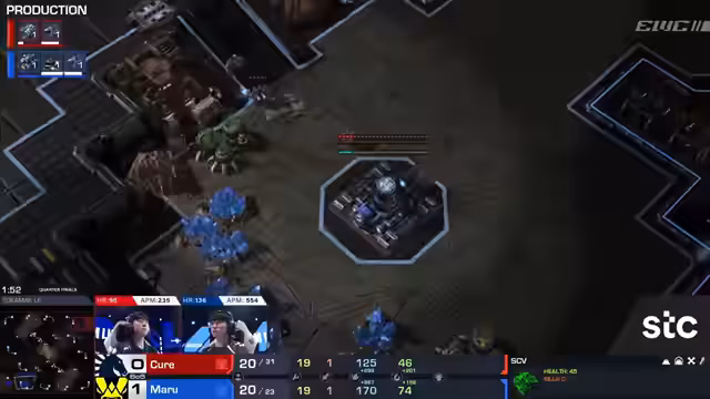 04:36:45Im nächsten Match trifft Maru von Vitality auf Cure von Team Liquid in einem Terran gegen Terran-Duell. Die Kommentatoren unterstreichen die Rivalität zwischen den beiden Spielern, die aus diversen Turnieren bekannt ist. Maru wird als eine der schärfsten Terran-Spieler heutiger Zeit bezeichnet. Die Analyse zeigt, dass beide Spieler technisch auf höchstem Niveau agieren und auch in frühen Spielphasen bereits kleine Vorteile für sich nutzen können.