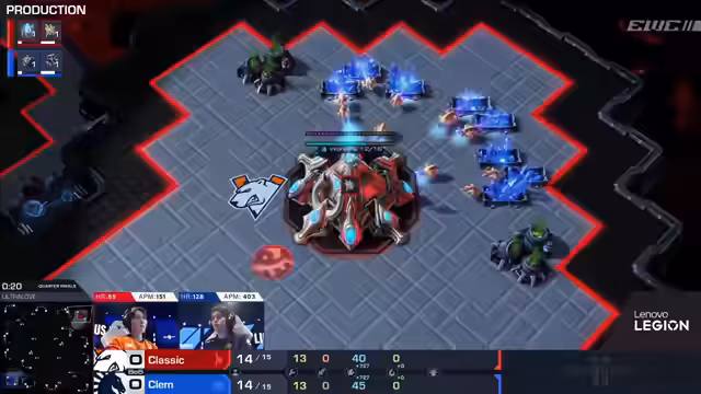 07:15:31Classic besiegt Clem mit einem klaren 3:0 in Best-of-Five. Er dominiert durch seine Präzision und taktische Überlegenheit, insbesondere durch den Einsatz von Einheiten wie Stalkers und später High Templars mit Storm Abilities. Clem kämpft tapfer, kann aber die Überlegenheit von Classic nicht brechen. Die Kommentatoren loben Classics exzellente Leistung als "absolute Maschine" und meinen, dass er eine große Chance habe, das Turnier zu gewinnen.