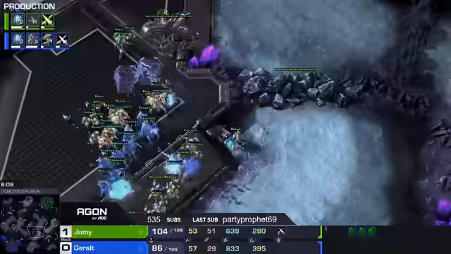 03:08:07Spirit macht einen kritischen Fehler, indem er eine Position falsch einschätzt undCreator die Möglichkeit gibt, seine Main-Base anzugreifen. Mit einer gut platzierten Liberator-Waffe und starkem Mikromanagement kann Spirits Armee dezimiert werden. Creator nutzt diese Chance, um eine massive Offensive zu starten und Spirits Basis zu überrennen. Kommentatoren bewundern Creators 'Killer Instinct' und bezeichnen den Zug als spielentscheidend, was Spirit zum GG zwingt.