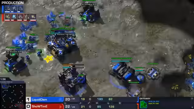 00:20:20Das nächste Match war Hero gegen Shin. Hero, in blau, startete aggressiv mit Reaper-Hellion-Druck, der jedoch von Showtime gut verteidigt wurde. Frühe Scouts lieferten Hero wichtige Informationen über Shins Basis und Einheiten. Die Kommentatoren äußerten Bedenken bezüglich Clems Spiel gegen Hero, da Hero für seinen aggressiven und bestrafenden Spielstil bekannt ist. Ein Liberator-Drop von Clem verursachte zwar Schaden, aber die Wirtschaft blieb ausgeglichen. Die Diskussion um Clems Mikro-Management und die Effektivität seiner Einheiten wurde fortgesetzt, wobei die Kommentatoren seine außergewöhnlichen Fähigkeiten hervorhoben. Hero spielte ein Stargate-Build und bereitete einen Minendrop vor, während Shin auf Phoenix reagierte.