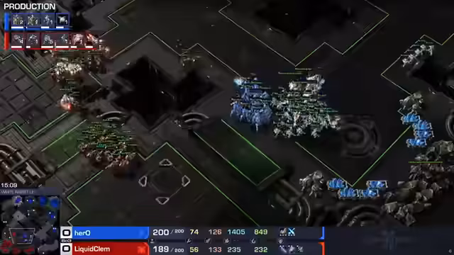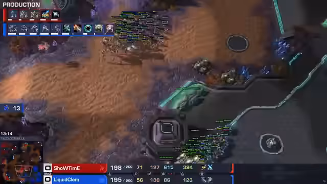 00:03:10Clem setzte seine aggressive Strategie fort, verzichtete überraschenderweise auf Minen und spielte ein reines Bio-Viking-Build. Dies deutete darauf hin, dass er das Spiel schnell beenden wollte, bevor Showtime Kolosse produzieren konnte. Trotz Clems anfänglicher Dominanz und der Schwierigkeiten für Showtime, hielt dieser stand und konnte weitere Basen etablieren. Die Kommentatoren bemerkten, dass Clem, obwohl er normalerweise sehr aggressiv ist, nach Showtimes anfänglicher Verteidigung weniger Druck ausübte. Dies gab Showtime die Möglichkeit, sich zu erholen und seine Wirtschaft auszubauen. Die Partie entwickelte sich zu einem Makro-Spiel, was die Kommentatoren begrüßten, da es spannender war als ein schnelles Ende.