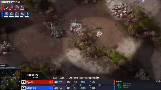 02:53:32Es wird analysiert, wie Clem im zweiten Spiel mit Minen-Drops Druck ausübt und Maxpex zur Worker-Splittung zwingt. Trotzdem gelingt es Maxpex, seine Wirtschaft auszugleichen. Es wird diskutiert, ob Clem seine Angriffe hätte durchziehen sollen oder ob er mit seiner Situation zufrieden ist. Die Kombination Phoenix Coloss wird als unangenehm für Terraner beschrieben. Es wird analysiert, wie Clem Phoenix einsetzt, um Medivacs auszuschalten und Informationen zu sammeln. Der Observer wird als tödlich für Clem auf seinem Niveau bezeichnet und muss entfernt werden. Es wird festgestellt, dass Maxpex mit seiner aktuellen Armee nicht kämpfen kann und sich zurückziehen muss. Clem hat einen Vorteil von 30 Army Supply, aber das Spiel ist noch nicht vorbei.