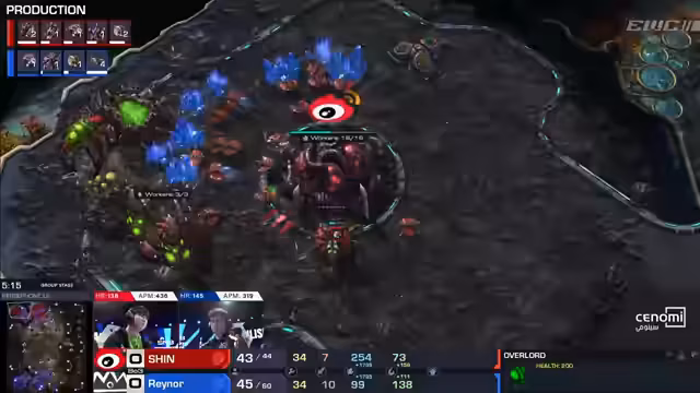 05:46:53Das Spiel zwischen Shin und Rayer startet sehr aggressiv. Shin geht mit einem frühen Baneling-Angriff vor, der Rainer unter Druck setzt. Rainer kann die Attacke mit Verlusten abwehren, doch der frühe Schaden ist gemacht. Beine Spieler etablieren nun ihre Ökonomie, während Spannung und die Herzfrequenz der Spieler aufgrund der nervösen Anfangsphase hoch sind. Es ist ein klassisches ZvZ mit hohem Risiko.