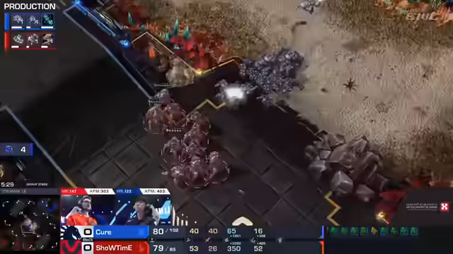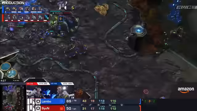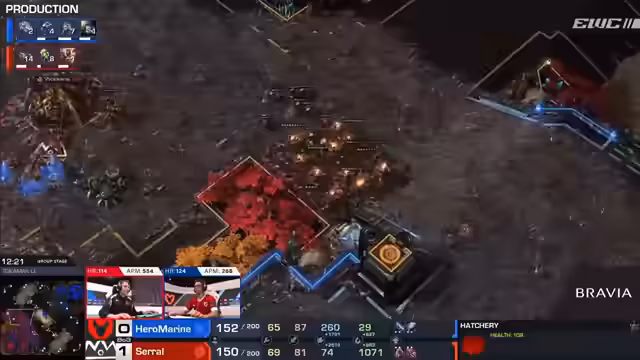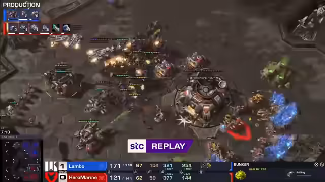 04:10:35Spannendes Spiel zwischen Hero Marine und Lambo, in dem Hero Marine eine kritische Situation verteidigen muss. Ein Command Center wird abgebrochen, was ihn in Bedrängnis bringt, doch er kann den Schaden abwehren und seine Wirtschaft aufrecht erhalten. Ein späterer Push, unterstützt von Banshees und Vikings, zwingt Lambo zum Rückzug und gibt Hero Marine die entscheidende Initiative. Mit einer überlegenen Wirtschaft und Armee kann er Lambos Expansionen zerstören und das Match für sich entscheiden.