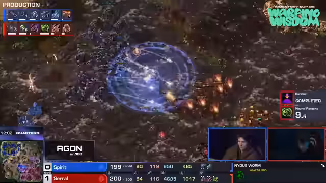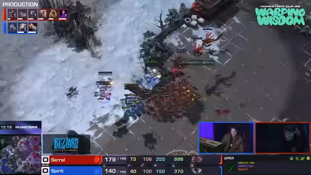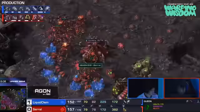 03:08:05Ein Spiel zwischen Serral und Spirit beginnt, wobei Serral sich stark auf Lurker-Einheiten verlässt. Kommentatoren heben die Stärke der Lurker hervor, insbesondere nachdem Serral das Lurker-Range-Upgrade erhält. Spirit, mit seinem Bio-Bestehend aus Marines und Tanks, versucht vergeblich, durchzudringen, scheitert jedoch an der Effektivität der Lurker und der taktischen Vipers von Serral. Serral kontrolliert das Spiel durch konstanten Druck mit Lurkern und Zerglings und verhindert erfolgreich Spirits Aufstieg zur vierten Basis. Die Armee von Spirit wird decimiert, was zu einem klaren Sieg für Serral führt.