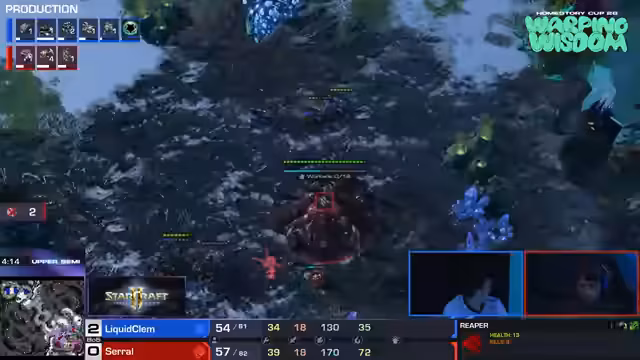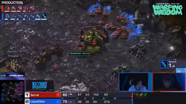 02:10:34Mid-Game-Phase, in der Nightmare einen massiven Recall an seiner Hauptbasis startet und Clem mit einer großen Bio-Armee kontert. Nightmare setzt erfolgreich High-Templar mit Psionischer Sturm ein, kann jedoch Clem's Armee aufgrund der vielen Medivacs nicht aufhalten. Clem nutzt diese Gelegenheit, um Nightmare's Forge und seine vierte Basis zu zerstören und einen deutlichen Vorteil in Upgrades und Einheitenzahl zu erlangen. Kommentatoren loben Nightmare's Versuch, aber Clem's Kontrolle ist zu überwältigend.