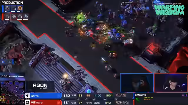 05:55:22Die Kommentatoren analysieren das Spiel zwischen Serral und Maru, wobei Marus frühen Hellion-Angriff und Serrals schnelle Reaktion mit Baneling-Speed hervorgehoben werden. Es wird betont, dass Serral im Gegensatz zu Clem, der im Early-Game keinen Rückstand erlitt, hier einen Vorteil erlangt. Marus Upgrade-Vorteil wird erwähnt, aber Serrals Massen-Zergling-Baneling-Strategie relativiert dies. Serrals Fähigkeit, auf alles, was Maru versucht, eine Antwort zu finden, wird gelobt. Marus Schwierigkeiten, Möglichkeiten zu kreieren, werden hervorgehoben, während Serral die Kontrolle behält. Die Bedeutung von Creep-Spread für Serrals Armee wird betont, und Marus Versuch, mit Widowminen Schaden anzurichten, wird analysiert. Serrals Übergang zu Lurkern wird erwartet, was Marus Situation weiter erschwert. Trotz Marus Bemühungen, sich zu verteidigen und Gegenangriffe zu starten, scheint Serral die Oberhand zu behalten, was zu Spekulationen über Marus mögliche Verzweiflungstaktiken führt.
