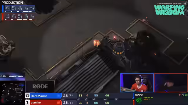 01:20:22Es wird über die Counter-Möglichkeiten von Gumeo diskutiert, wobei Helions als effektiv angesehen werden. Die Cyclone wird als problematisch eingestuft, aber der Vorteil von zwei Ravens wird hervorgehoben. Hewmarin wird als ängstlich gegenüber Gumeo im Early Game beschrieben. Gumeo benötigt Cyclones zur Verteidigung gegen Medivacs. Es wird die Bedeutung des Raven-Einsatzes betont und die Reaktion auf kleinere Einheiten analysiert. Gumeos aggressive Spielweise führt zum Verlust der dritten Basis. Hiro Marines Entscheidung, die dritte Basis nicht anzugreifen, wird als riskant eingestuft. Ein Rückblick auf ein früheres Match zwischen Hiro Marine und Gumiho beim eSports World Cup wird gegeben, wo Hiro Marine eine 2-0 Führung verspielte.