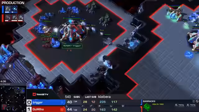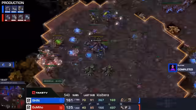 03:49:36Eine Blinding Cloud wird eingesetzt, um die Reichweite der Einheiten zu reduzieren. Shin macht mit seinem Push viel Schaden. Er zieht sich zurück, um neu zu sammeln. Burrow wäre eine gute Option, wurde aber nicht erforscht. Der Hive geht verloren, aber der Tag steht noch. Es herrscht ein Army Supply von 120 gegen 110. Shin hat eine etwas bessere Economy. Es sind vier Basen gegen drei Basen. Gumiho setzt ein weiteres Harassment ein. Es ist das erste Makro-Game zwischen den beiden. Die Partie läuft schon eine Viertelstunde. Shin hat eine bessere Economy, aber ein kleineres Army Supply. Gumiho muss seine Armee in die Offensive bringen, bevor Reinforcements eintreffen. Shin kann das Spiel in mehreren Wellen angehen. Gumiho setzt Parasitenbomben auf die Medevacs ein. Shin wird voraussichtlich gewinnen. Gumiho kann das Spiel nur gewinnen, wenn seine Aktionen gut laufen. Liberator sind jetzt dabei. Ultras kommen von mehreren Seiten. Gumiho gibt auf. Shin gewinnt mit 3:2. Gumiho wird im Lower Bracket gegen Trigger spielen.