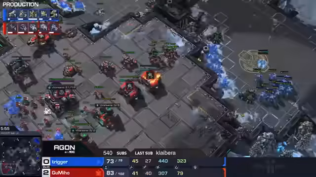 02:08:59Clem startet einen aggressiven Push gegen Trigger, der sich als verheerend erweist. Mit präziser Kontrolle jeder Einheit gelingt es Clem, Triggers Robo Bay zu zerstören und somit die Produktion von Kolossen zu unterbinden. Obwohl Trigger nicht sofort komplett untergeht, ist sein Untergang nur eine Frage der Zeit. Clem baut neue Marines und Madwex, während Triggers Eco noch in Ordnung ist, aber seine Armee leidet. Der Kommentator lobt Clems Spiel als 'richtig stark' und konstatiert, dass Trigger 'richtig gelitten' hat. Es wird diskutiert, dass maximal Maxpex oder Hero mit ihrem Micro gegen Clems Spiel hätten gegenhalten können. Clem zerstört auch eine Robo von Trigger. Trigger hat keine Kolosse und nur Gateway-Einheiten. Vikings sind nicht nötig. Trigger kämpft mit stumpfen Waffen und wird überfahren. Clem gewinnt den Kampf und erzwingt das GG. Es steht 1:0 für Clem.