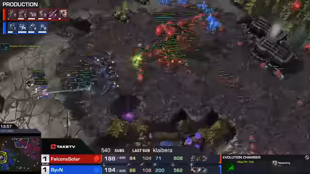 03:10:48Die Spieler nehmen alles an Ressourcen mit, was sie können. Es gab bereits einige 3.0-Spiele heute. Die Zuschauer werden nach ihrer spontanen Einschätzung gefragt, wer das aktuelle Match gewinnen wird, wobei die Mehrheit auf Shin tippt. Die Aktionen der Benjis werden als nicht besonders effektiv eingeschätzt, da sie nur wenige Worker ausschalten. Gumiho agiert defensiv mit Cyclone-Mech, während Shin keine Anstalten macht, anzugreifen, obwohl er eigentlich maximal versorgt ist. Shin plant Cyclones einzusetzen, was gegen Vipern problematisch sein könnte. Der Schaden, den Shin verursacht, wird als hoch bewertet, obwohl es sich um einen wenig engagierten Push handelt. Zerg kann typischerweise schnell nachbauen, besonders im Vergleich zu Terranern. Die Vipern benötigen dringend Unterstützung. Shins Vorteil beim Armysplay wächst, und er scheint die Oberhand zu gewinnen. Gumiho darf es nicht passieren, gegen einen normalen Angriff zu sterben.