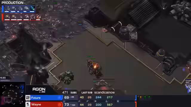 02:51:45Im zweiten Spiel zwischen Future und Wayne versucht Wayne, sich mit einer Wall und Medivacs zu verteidigen, doch Future nutzt seine Ressourcen effizienter und zwingt Wayne zu einem ineffizienten Abtausch. Parallel dazu entwickelt sich eine Diskussion im Chat über PC-Upgrades und die Notwendigkeit von 4K-Auflösung. Viele Nutzer äußern, dass sie mit Full HD zufrieden sind und keinen Ansehen zum Upgrade sehen, da es keinen spürbaren Vorteil für das Gameplay bringt.