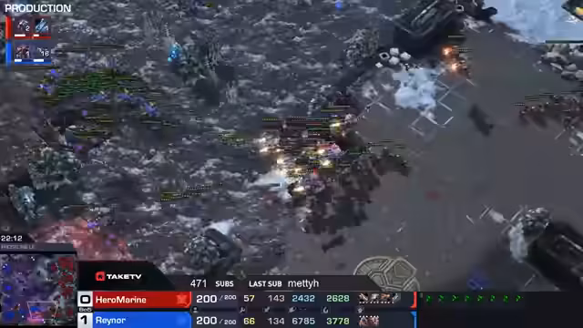 03:30:58Reynor zeigt sich im weiteren Verlauf des Spiels überlegen. Er kann seine Armee effizient einsetzen und Hero Marines Stellungen überfahren, was zu einem erheblichen Vorteil in der Armee-Stärke und Ressourcenausbeute führt. Hero Marine kann nicht ausreichend gegenhalten und verliert weiter Basen. Der Kommentator stellt fest, dass Hero Marines Armee im Inneren zwar nicht schwach ist, aber die Bewegung und Verteidigung auf der weitläufigen Karte ein zentrales Problem darstellt.