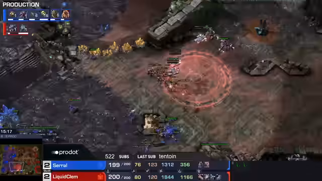 01:49:13Serral hat sein Carapace-Upgrade abgeschlossen und arbeitet am dritten. Clem setzt sein Harassment mit zwei Medivacs fort. Clem hat über 100 Armies, was die Situation für Serral schwierig macht. Ghost Academies sind in Produktion, was gegen Ultras nützlich ist. Liberatoren sind aufgrund der Map-Struktur ebenfalls gut. Es gibt wenig Möglichkeiten, am Terraner vorbeizulaufen, wenn er defensiv steht. Clem macht viel Druck und Serral gerät in die falsche Richtung. Clem stabilisiert sich, was es für Serral schwierig macht. Clem nimmt das Command Center nicht raus, was ein Fehler ist. Clem weiß genau, wie man Hatcheries sniped und wie wichtig die Medivacs sind. Clem gewinnt das Spiel mit einem Reverse-Sweep, 2-0 für Serral, dann 3-2 für Clem.