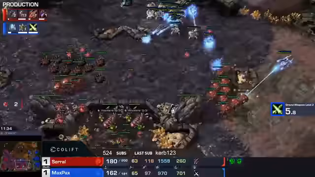 02:14:47Es wird das Szenario als Terraner diskutiert, dass man hinten in der Economy ist und eine starke Armee hat. Maxpex müsste perfekt verteidigen, um zu gewinnen. Seine 95 oder 103 Armee Supply müssen das Supply von Serral clearen. Ein Konter auf die 6. Position kommt. Die Baneling haben mehr geholfen als geschadet. Alle Storms sind verbraucht. Roaches, Linge und Bane Linge fahren drüber. Serral hat eine Base rausgenommen. Serral ist auf fünf Basen und Maxpex auf drei. Es reicht einfach nicht. Brutus ist mit am Start. 1 zu 0 für Serral. Es wird Werbung eingespielt. Es ist 1-0 für Serral. Rechts oben ist Serral gespawnt, links unten Max-Pax. Es ist immer so, dass quasi eine 4 Minuten Aufbaufase ist, bis das erste Orakel beim Gegner aufschlägt. Es kommt so gut wie nie was von Protoss Seiten.