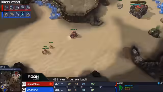 02:34:42Im entscheidenden Kampf zwischen Clem und Hero hängt alles von der Armeekontrolle ab. Clem nutzt seine Marine-Marauder Armee zusammen mit Ghosts, um mit EMP die Protoss-Energie zu zermürben und die Armee zu schwächen. Heros Versuche, mit Disruptoren und Kolossen durchzubrechen, scheitern an Clems präzisem Mikromanagement und dem intelligenten Einsatz von Minen. Clem nutzt seinen wirtschaftlichen Vorteil, um seine Armee zu verstärken und führt einen Base-Trade herbei, der ihn als Sieger aus dem Match hervorgehen lässt.