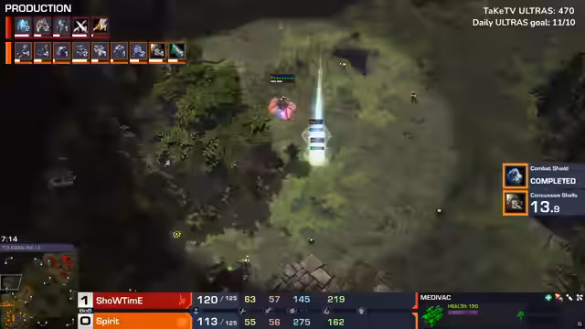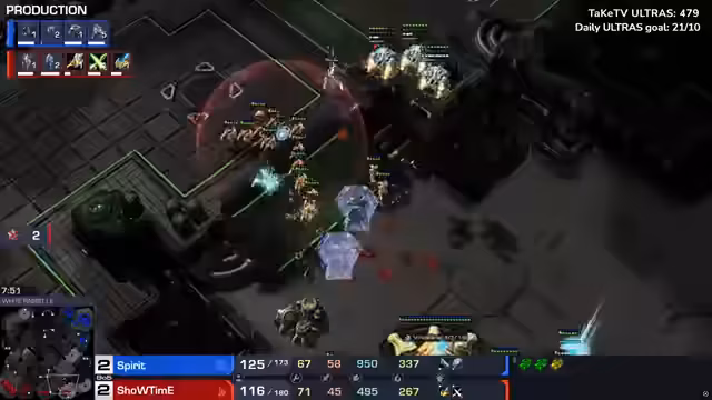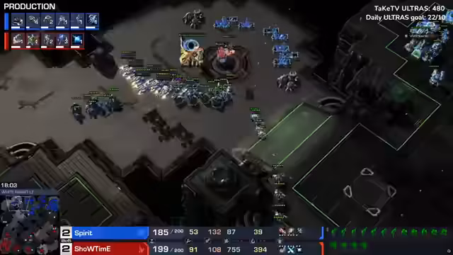 06:47:24Showtime verliert Kolossen und Viking-Einheiten, während Spirit mit Bio und Ghosts kontert. Trotz 40 Army Supply-Rückstand nutzt Showtime Dark Templar und Warp Prisma für Gegenangriffe. Spirit setzt sich jedoch durch und zerstört Showtimes letzte Basen. Showtimes GG beendet die Map, Spirit gewinnt die Serie 3:2. Der Streamer drückt Enttäuschung aus, lobt aber Spirit's Leistung.