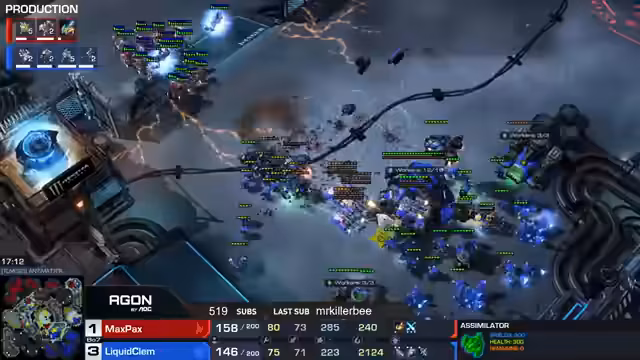 02:52:25Es wird diskutiert, wie die Anzahl der Basen und der Airspace die effektive Größe einer Map beeinflussen. Auch wenn Maps gleich viele Basen haben oder gleich groß sind, kann die Bewegungsdauer der Armee variieren. Antimata wird als gigantisch wahrgenommen, aber ihre genaue Größe ist unbekannt. Ein weiterer Punkt ist die Bedeutung von Upgrades, wobei ein 2-2 Upgrade gegenüber einem 2-0 Upgrade bevorzugt wird, besonders wenn es Kern-Upgrades gibt, die das Gameplay verändern. Nexus-Snipes werden auch thematisiert, wobei die Anzahl der Stalker entscheidend ist, ob ein Medivac sicher entkommen kann. Im späteren Spielverlauf hat Klemme einen Vorteil durch bessere Basenversorgung und Army-Control gegenüber Maxpex, der Schwierigkeiten hat, seine fünfte Basis zu etablieren. Die Limitierung der Protoss-Rasse im Vergleich zu Terran wird angesprochen, insbesondere im Bezug auf Charged Lords und Range-Einheiten. Clem kann das Potenzial von Terran ausschöpfen, was für andere Spieler eine Herausforderung darstellt.