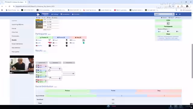 00:22:22Es folgen Ankündigungen zur Turnierstruktur: Nach diesem BO5 folgen Clem vs. Maxpex (BO5), dann Siegermatch (BO5), Upper Bracket Final (BO5), Lower Bracket Final und ein Grand Final (BO7). Persönliche Termine werden geteilt: Am 25. Dezember wird ein von Vordi vorab aufgenommener Weihnachts-Stream (Christmas Day Games) gecastet, während der 24. familiär gebunden ist. Für die nächste Woche ist eine Pause geplant. Das zweite Spiel im Match beginnt, erneut mit Hatchery First und Pool bei beiden Spielern. Langsame Early Game-Entwicklung mit Speed- und Gas-Investments. Wiederholt wird die Mirror-Strategie betont: Dritte Basen bei beiden, identische Unit-Produktion.
