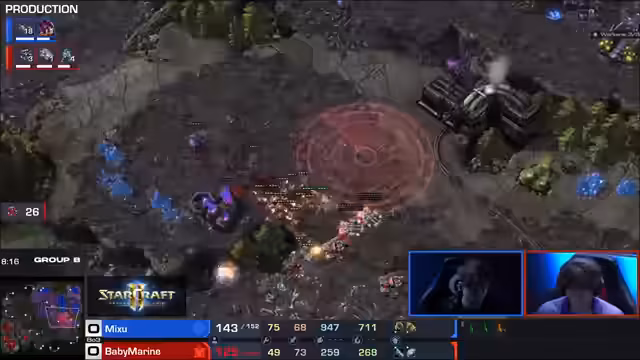 01:46:07Baby Marine nutzt einen strategischen Fehler von Mixu aus, der seine dritte Command Center verloren hat, und gewinnt damit das Spiel und die Serie. Kommentatoren bewundern den Playstyle von Clem, von dem Baby Marine zu profitieren scheint, während Mixu in einer schwierigen Position ist. Die Analyse schließt mit einem Ausblick auf die dynamische Gruppe B. Es werden die bisherigen Ergebnisse und die verbleibenden Matches besprochen, die den Turnierverlauf erheblich beeinflussen können. Spieler wie Spirit, Showtime und Jumi kämpfen um die Plätze, was die Gruppe als besonders aufregend und unvorhersehbar kennzeichnet.