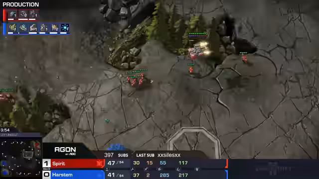 02:35:47Der Streamer kommentiert das erste Match zwischen Spirit (Terraner) und Harstem (Protoss). Spirit dominiert das Spiel durch strategische Entscheidungen wie den Einsatz von Cyclones und Marines. Harstem wird kritisiert, da er gegen Spirit nicht scoutet und sich dadurch in eine schlechte Position begibt. Spirit gewinnt das Spiel klar mit 2:0 und qualifiziert sich damit für die nächste Runde. Direkt im Anschluss wird das Spiel zwischen Harstem und Lambo gestartet, ebenfalls eine Partie auf der Map Snowpiercer.