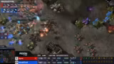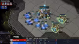 01:46:10Es folgt das hochkarätige Match zwischen Harstem und Cure, ebenfalls ein Terraner-gegen-Protoss-Duell. Harstem startet aggressiv mit Phoenix und kann Cure frühzeitig massiv unter Druck setzen. Nach erfolgreicher Verteidigung durch Cure setzt Harstem den Druck fort, landet mit Banshees neun Kills und gewinnt letztendlich die Map. Er gewinnt auch die zweite Map und somit das BO3 mit 2:0, wodurch er sich im Turnier stark verbessert.