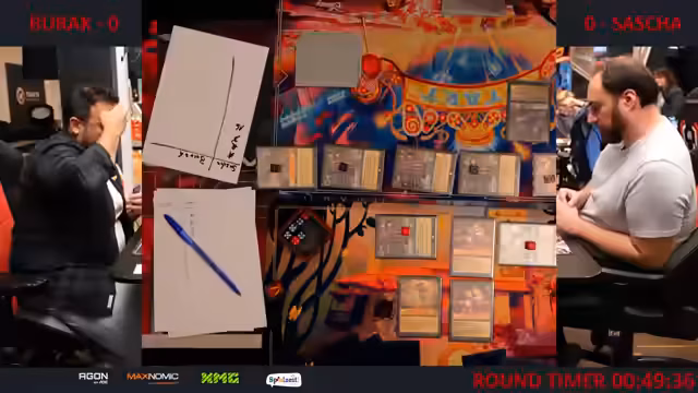 08:41:24Sascha legt einen Powerstart hin, dem Burak nichts entgegenzusetzen hat. Der Start ist entscheidend, besonders in solchen Matches. In Runde 3 wird Burak voraussichtlich wieder anfangen. Buraks Deck ist möglicherweise etwas langsamer als Saschas. Die Kommentatoren analysieren die Karten in Buraks Hand. Der Mulligan-Prozess wird erklärt, der sehr spielerfreundlich ist. Steelsong-Decks hatten früher eine hohe Brick-Chance, sind aber schneller geworden. Sascha kontert mit gleicher Münze. Burak setzt Daisy und einen geschifteten Robin ein. Es wird diskutiert, warum Burak nicht Let the Storm Rage On oder Strength of a Raging Fire eingesetzt hat, um Saschas Cinderella zu entfernen. Burak geht mit Daisy und einem geschifteten Robin los.