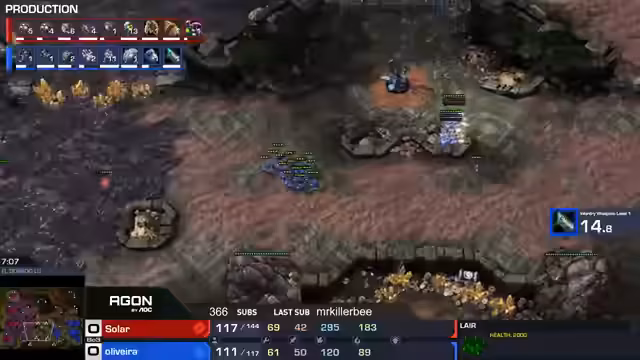 02:01:24Bjarne's Spielstil wird als aggressiv beschrieben, aber es wird angemerkt, dass er nicht unbedingt einen All-In-Ansatz verfolgt oder einen großen Plan hat, sondern eher makroorientiert spielt. Solar hingegen wird generell als sehr makroorientiert eingeschätzt und spielt selten All-Ins. Es wird argumentiert, dass ZVT-All-Ins aus Sicht des Kommentators nicht die besten Varianten sind, da Terraner All-Ins sehr gut aufhalten können, wodurch das Spiel mehr in die Hände des Terraners gelegt wird. Im Gegensatz dazu wird in anderen Matchups das All-In-Spiel als Möglichkeit gesehen, die Kontrolle über das Spiel zu behalten. Die Fähigkeit des Terraners, selbst mit drei Command Centern alles abzuwehren, wird hervorgehoben.