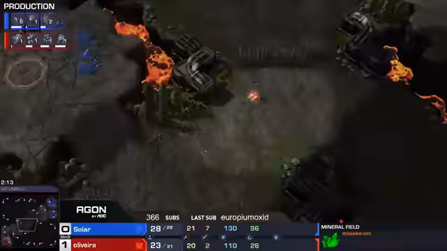 02:54:51Es wird die nächste Partie zwischen Olivera und Solar angekündigt, wobei Eldorado als Map dient. Der Kommentator glaubt, dass Eldorado gut zu Olivera passt und er gegen Solar gewinnen könnte, obwohl Solar tendenziell als etwas besser eingeschätzt wird. Olivera's anhaltende Relevanz nach seinem World Champion-Titel wird betont. TakeTV hat sich stark weiterentwickelt und macht viele Produktionen und Agenturarbeit, wie die Gamescom-Lan mit MYI. Die StarCraft-Streams sind nur noch ein kleiner Teil der Aktivitäten. Der Kommentator vergleicht dies mit Apple, das neben seinen technischen Produkten noch eine Schokolade anbieten würde. Olivera startet einen aggressiven Push, der als typisch für seinen Stil beschrieben wird.