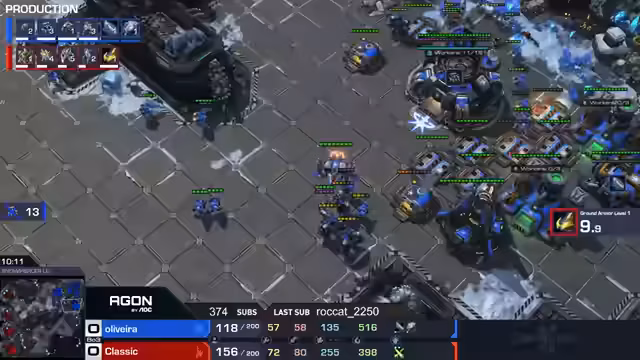 04:25:29Die Analyse der Spielsituation zeigt, dass Traps defensive Haltung typisch für viele Protoss-Spieler ist, die auf ein Late-Game mit Kolossen und Disruptoren setzen. Oliveira hingegen versucht, mit schnellen Angriffen Vorteile zu erzielen, was jedoch oft scheitert. Trap fokussiert Medivacs und splittet Stalker geschickt. Die Einschätzung deutet darauf hin, dass Oliveira unter Druck steht und Classic die Oberhand gewinnt, insbesondere durch den Aufbau einer fünften Basis und das Fehlen von Druck seitens Oliveira. Der Ausgang des Spiels scheint bereits absehbar, da Classic's Armee zu stark ist und Oliveira kaum Möglichkeiten hat, sich zu verteidigen. Der Kampf ist zu einfach für Classic, der das Spiel dominiert und einen klaren Sieg erringt. Oliveira verlässt das Spiel nach dem 1G.
