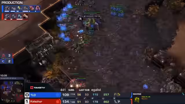 01:00:10Killersur führt im BO3 mit 1:0. Der Streamer kommentiert, dass es für DNS wirklich noch gar nicht läuft. Er weiß nicht, wie Killersur das Spiel selbst empfunden hat. Eine Probe nervt bei Killersur. Cybercore und Phase-Expension von DNS. Keine Überraschung. Doppel-Gas, sprich, es wird ein Factory-Build werden. Stargate-Play von DNS. Eine Probe wird direkt wieder rausgesnipet. Was willst du eigentlich alles nicht sehen? Es bringt dich nicht direkt um, hier die Probe zu verlieren, aber ist halt auch nicht nötig. Beide Ferrari disqualifiziert. Der Phoenix hier würde gerne die Mine liften, aber es sind zwei Phoenix. Killersur pusht auf die dritte Base. Hat hier einen Liberator mit dabei, einen Cyclo und eine ganze Menge Marines. Dritte Base abgebrochen. Das ist schon ein großer Erfolg jetzt hier für Killersur. Entweder kann er weiter pushen oder zurückziehen. Phoenix Down. Der Streamer fragt sich, was mit DNS los ist, da er ihn eigentlich für sehr stark hält, aber heute läuft gar nichts.