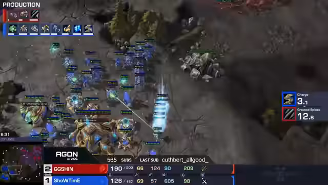 02:09:35Es wird analysiert, dass Cure mehrere Anläufe mit einer Raven-Armee brauchen würde, um die Battlecruiser-Viking-Armee von Gumyo zu besiegen. Wenn es schlecht läuft für die Ravens, sind die schnell hinüber, während die Battlecruiser sich zurückziehen können. Cure greift an, wobei die Interference Matrix eingesetzt wird. Es werden zehn neue Vikings produziert. Es wird festgestellt, dass Gumyo noch über gute Ressourcen verfügt, aber Cure einen großartigen Kampf benötigt, um zu gewinnen. Die Spielweise von Gumyo wird kritisiert, aber er hat immer noch die beste Ausgangslage. Jede Einheit, die ausgeschaltet werden kann, ist natürlich von Vorteil. Die Mobilität der Battlecruiser wird erneut hervorgehoben. Cure gibt das Spiel auf, womit Gumyo mit 3:1 ins Halbfinale einzieht. Es folgt eine kurze Pause vor dem nächsten Spiel mit Showtime gegen Shin. Nach einer Werbepause beginnt das nächste Spiel mit PVZ-Action. Showtime spielt in blau gegen Shin in rot. Nach dem Spiel gibt es noch Skiless gegen Bunny. Das Meta im PVZ wird als standardisiert beschrieben, mit Gate-Phase-Expansion, Stargate, dritter Basis und Forged oder Twilight Console Forged. Der Verlauf bis zum Mid-Game ist meist identisch. Es wird erwähnt, dass Showtime der einzige deutsche Spieler im Turnier ist.