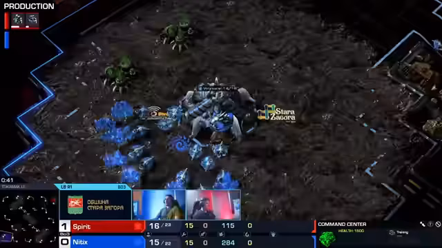 01:33:08Das Spiel zwischen Spirit und NITX beginnt mit einem offensichtlichen Vorteil für Spirit. NITX erleidet in Game 1 einen schnellen und unerwarteten Verlust durch einen Hellion-Build von Spirit, den er nicht verteidigen konnte. Auch in Game 2 verliert NITX nach einem ähnlichen Fehler früh viele Arbeiter und ist wirtschaftlich im Nachteil. Kommentatoren und Zuschauer bewerten den Skill-Unterschied als signifikant. Spirit kann den zweiten Satz souverän für sich entscheiden und gewinnt die Serie mit 2:0.