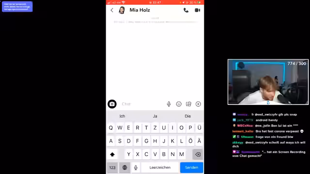 00:08:53Der Streamer startet das Format 'Frauen klären für Zuschauer' mit einem Anruf bei Trojan, einem 13-Jährigen. Trojan erklärt, dass er in ein 14-jähriges Mädchen aus seiner Klasse verliebt ist, die er als 'Baddie' bezeichnet. Er hat sie als Hintergrundbild auf seinem Handy. Die beste Freundin des Mädchens hasst ihn jedoch. Der Streamer gibt Trojan Ratschläge, wie er das Mädchen über Snapchat kontaktieren und für sich gewinnen kann. Er analysiert den Chatverlauf zwischen Trojan und dem Mädchen, gibt Anweisungen, was er schreiben soll, und interpretiert die Antworten des Mädchens. Er rät Trojan, sich authentisch zu zeigen und seine Gefühle auszudrücken. Er gibt auch Ratschläge, wie er mit der Situation umgehen soll, falls das Mädchen seine Gefühle nicht erwidert. Der Streamer versucht, Trojan zu helfen, die Situation mit Humor zu nehmen und nicht zu verzweifeln. Trojan wird aufgefordert, einen Snap von sich zu schicken, um authentischer zu wirken.