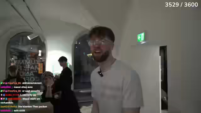 02:36:05Die Stimmung wird durch die Interaktion mit Theo und Julian aufgewärmt. Es kommt zu einer spontanen und humorvollen Rucksackkontrolle durch den Streamer, die als interaktiver Gag dient. Danach wird der Kauf eines Hoodies für einen Freund namens Amaha thematisiert. Anschließend gibt es eine angespannte Situation, in der der Streamer Julian und andere Personen aus dem Laden weisen will, was auf eine gewisse Überforderung und Unruhe im Store hindeutet.