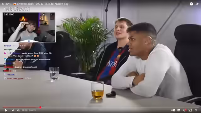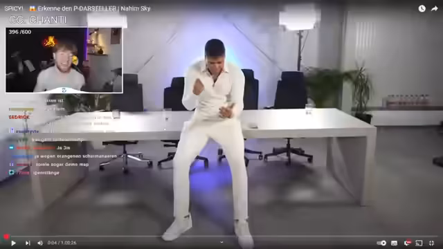 00:10:44Der Streamer führt eine Diskussion mit dem Chat über Pornokonsumhäufigkeiten und stellt fest, dass viele Zuschauer täglich Pornos schauen. Er präsentiert dann vier Personen, die angeblich Pornodarsteller sind, und veranstaltet eine Münzwette mit dem Chat, bei der die Zuschauer raten müssen, wer ein Pornodarsteller ist. Es kommt zu humorvollen Spekulationen über die Anwesenheit der Personen, was professionelle Darsteller von einfachen Arbeitern unterscheidet.